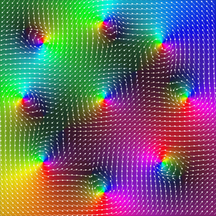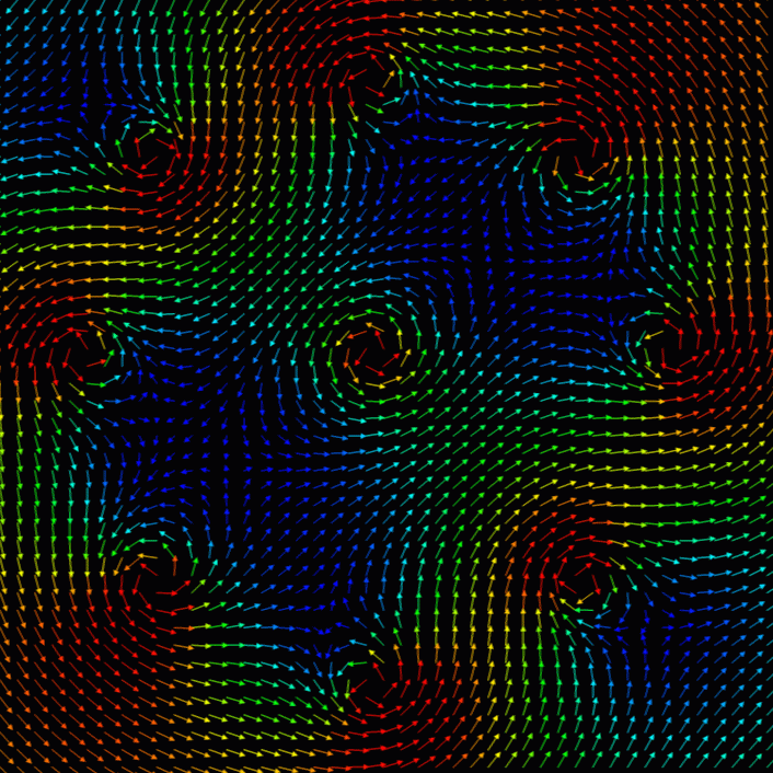 Sub-sampling coupled with intensity-tapering may suppress, to some extent, cluttering and convey the flow orientation (the positive direction of the field) while a rainbow color map can be adopted to show the velocity magnitude. As an alternative, colorwheel maps flow vectors to Hue-Saturation-Value (HSV) colors through the use of a legend where there are a one-to-one correspondence between normalized vectors and circularly distributed radial lines of hue and a certain map between magnitude and radially varying brightness or value. Arrows are a little bit more complex in geometry than intensity-tapering line segments and hence require sparser sub-sampling of the field to alleviate the cluttering problem. Arrow-size mapping, in addition to the aforementioned two color map schemes, can be employed to depict the velocity magnitude. Sometimes arrows are placed at jittered grid points in a way to combat artifacts that would otherwise result from the regular pattern of the underlying grid. However, cavities might occur near flow boundaries. |